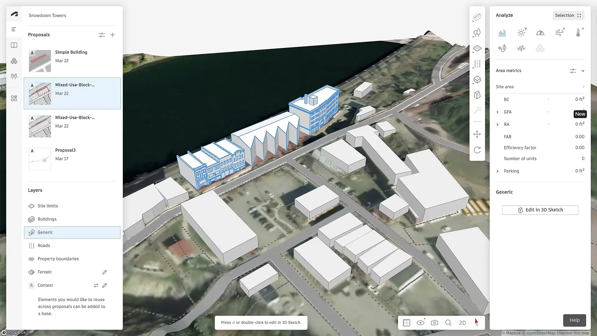 Crea diseños de alta calidad y rendimiento. Usa Forma Site Design para modelar conceptos complejos de diseño 3D en minutos. Cambia con fluidez las propuestas a Revit para obtener diseños detallados y beneficiarte de los flujos de trabajo de diseño generativo.