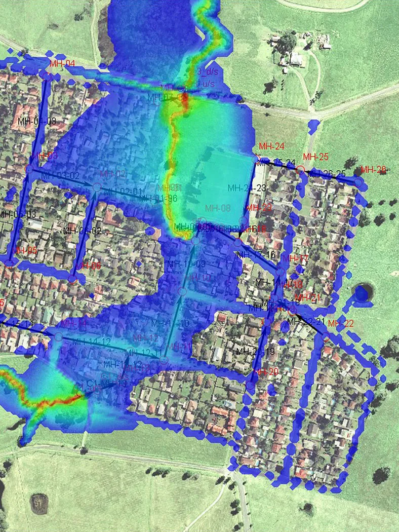 - Cree modelos hidrodinámicos 1D y 2D para el análisis detallado de sistemas de aguas pluviales, aguas residuales y alcantarillado combinado.